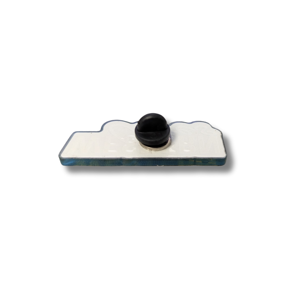 This acrylic pin features a soft PVC clutch, allowing you to fasten it to your clothes, backpack, or lanyard.